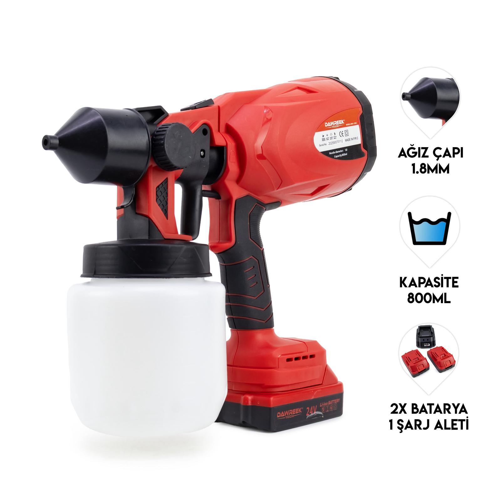 Dawrek Şarjlı boya tabanca 1.8mm 800ml sarı kırmızı mavi